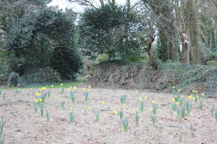 Some will stand waiting for another year, others will not. Camellia 'Winter's Interlude' captures the feeling exactly. It started flowering three or four weeks ago and the garden has stood still for a moment, but now it is shedding petals in drifts on the ground. Snowdrops are coming up nearby. The interlude is nearly over. In autumn I killed the grass in the narcissus meadow. I am hoping that the bulbs will have more vigour without competition. Already I think I prefer it this way. |