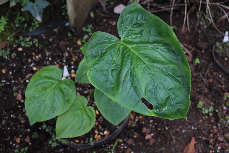 A tuberous aroid that I bought as Spathantheum orbignyanum when I saw it at Cotswold Garden Flowers. It turns out to be a little known member of the group from