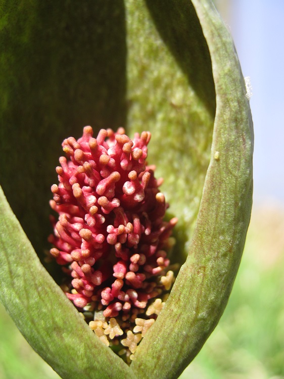 Remarkable flowers. I didn't detect any significant scent, but I didn't try too hard. (Thanks to David Scherberich for pointing out that this is a Gorgonidium, probably G.intermedium). Spathantheum orbignyanum has pinnatisect leaves and I am happy that this is a Gorgonidium however my other stock of Gorgonidium intermedium did not survive for long in the greenhouse while this has been remarkably tough. Plants of the World online says: "The native range of this species is Peru. It is a tuberous geophyte and grows primarily in the seasonally dry tropical biome." Adventurous Plants say: "Gorgonidium intermedium is an attractive plant, closely related to Spathantheum and Taccarum. Growing from a large tuber, a 12-18 inch petiole supports a greenish spathe enclosing a bright red spadix. After flowering, a large and attractive leaf is produced. Tolerant of cool growing conditions, and so ideally suited for cultivation in the UK, this makes an excellent pot or garden plant. After entering dormancy in the Autumn, store the tubers frost free. Numerous offsets are produced annually." |