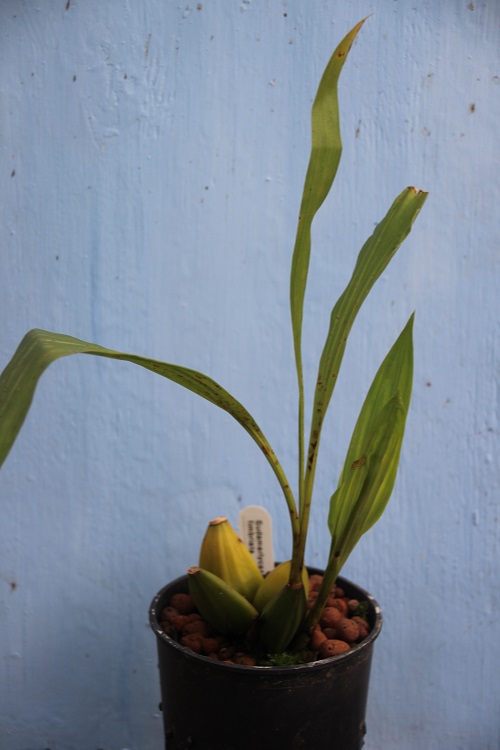 I bought it because I adore the green flowers of Ida locusta and thought that it had some chance of cold tolerance. Plants of the World online says: "The native range of this species is W. South America. It is a pseudobulbous geophyte and grows primarily in the wet tropical biome." The Internet Orchid Species Encyclopedia says: "A medium sized, cold to warm growing epiphytic or lithophytic species found in Colombia, Peru, Bolivia and Ecuador at elevations of 1000 to 2800 meters under scrub in rocky soil with shady conditions and, in river canyons and on decaying tree stumps, with ovoid pseudobulbs carrying 2 deciduous leaves that blooms in the later winter and early spring on a laxly erect, several at once, to 4" [10 cm] long inflorescence with nocturnally fragrant, waxy, long-lived flowers." La Foresta Orchids say: "Sudamerlycaste are endemic to Peru. It is a mountain species, it is at an altitude of 2000 - 3000m and grows on the limestone rocks or on the trunks of trees along the rivers." Unfortunatley I had an unusually severe radiation frost in the middle of December that completely destroyed it. I don't think that it would have been tough enough to survive in the greenhouse under normal circumstances but a sudden, severe frost so early in the season was clearly too much. |