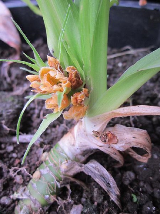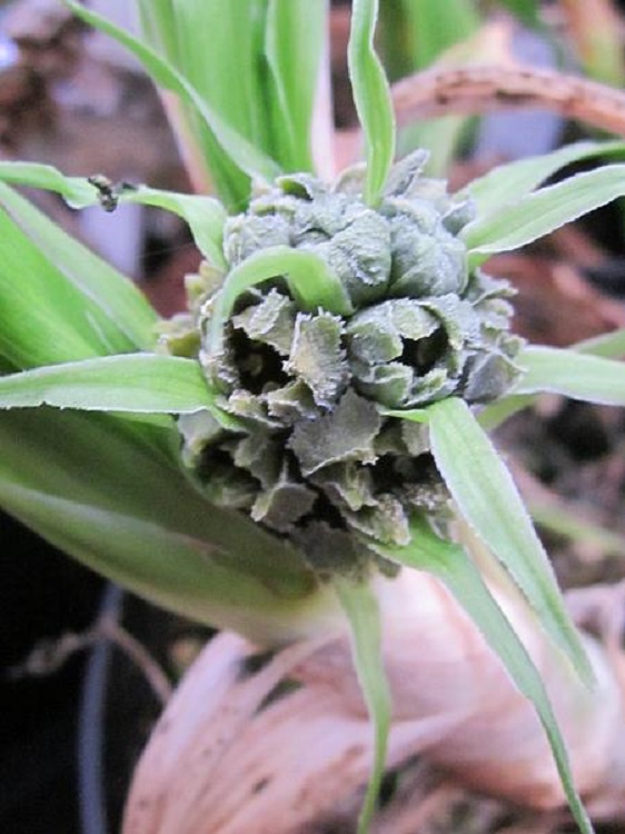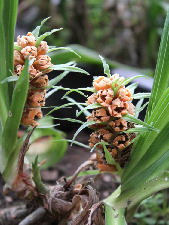Both carry the same collection number. The change from green to orange is not uncommon in Rohdea flowers as they mature.