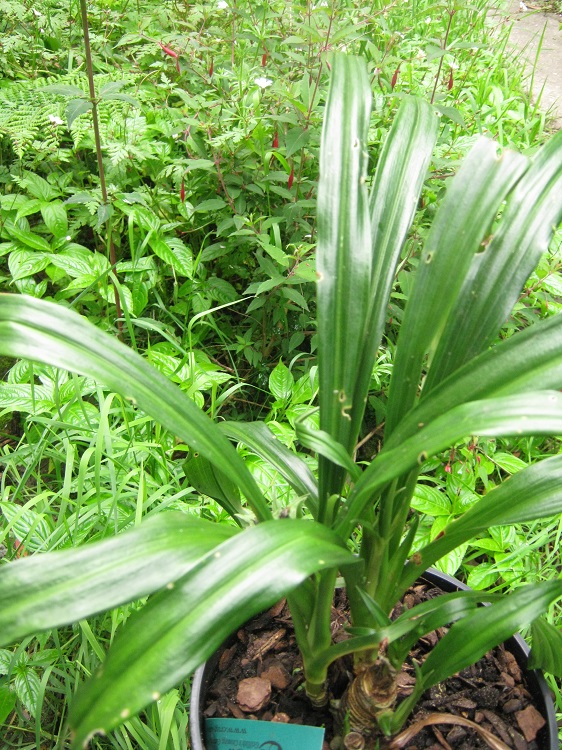 A rhizomatous woodland perennial rooting along its length as it slowly forms small clumps of strap-shaped thick-textured glossy leathery leaves to 30cm long, broadening towards the apexes.