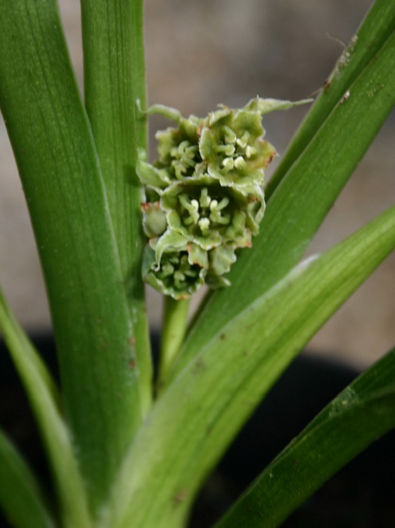 A fun little plant. Arrived this morning in full smelly flower. Collected as seed in north Vietnam by the Wynn-Jones' at Crug Farm Plants. It is probably worth noting that none of these plants like too much cold! Crug Farm Plants say: "An unusually small species with broad dark glossy green clasping foliage more reminiscent of Aspidistra. Which we collected seed from a moist narrow shelf above a river within the ancient forest on Phan Si Pan, North Vietnam. Where the small rosette-forming plant bore a spike of red fruit at 2200m in 2000. Easily grown in full to part shade in a well drained lime-free soil which has plenty of humus incorporated. Protect from severe cold." Under the name Campylandra wattii Plant Delights Nursery says: " Campylandra wattii is a perennial that few people have ever encountered, but you may know its close cousins, aspidistra and rohdea. To our knowledge, Campylandra wattii is one of the only winter-hardy members of the genus, surviving for us since 2007, with winter lows of 7 degrees F. In the wild Campylandra wattii can be found at elevations up to 9,000' in Southern China, Bhutan, and India, where it grows in moist, densely shaded forests. In the garden, Campylandra wattii forms an often solitary, finger-sized, upright stalk, ending in 2-3 terminal evergreen leaves. The small rohdea-like flower spike adorns the clump in late winter/early spring. This is a true bio plant (botanical interest only), but one that collectors of the unusual won't want to be without." |