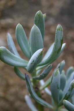 An odd succulent blue leaved daisy. I have yet to see if it is hardy enough to survive the winter in a cold greenhouse. I have since seen it growing outside in Falmouth, so I think it will survive under glass here. I might even try it in the garden. The genus Senecio has recently been split and this has become Curio repens. Plants of the World online says: "The native range of this species is Cape Prov. It is a succulent subshrub and grows primarily in the subtropical biome." Plantzafrica says: "Curio repens is a low, cluster-forming to drooping, leaf and stem succulent perennial from sandstone cliffs and rocky parts of the Cape Peninsula to Hermanus. The leaves, often crowded at the branch ends, are striking bluish pale green and have a resinous smell when damaged. Easily grown from cuttings or and best for dry, warm, Fynbos and Mediterranean gardens. Plants grow locally abundant, often in habitats difficult to reach. Widespread, well established in gardens and nurseries and consequently not threatened. Curio repens has been recorded in the Western Cape, from the Cape Peninsula in the west to Hermanus in the east, and also as far inland as the Simonsberg near Stellenbosch. The plants grow in rocky habitats and often on vertical quartzitic sandstone cliffs (all aspects) at altitudes of 10–1 000 m. Plants root in crevices, and on rock ledges, becoming drooping. Also sometimes seen on rocks close to the sea. The plant was first named Cacalia repens by Carl Linnaeus in 1767, moved to the genus Kleinia by Haworth in 1812, then to Senecio by Jacobsen in 1951. It was transferred to the new genus Curio created by Paul Heath in the journal Calyx in 1999. Curio was established by Heath for the group of succulents, previously in Senecio, distinguished by having an evergreen nature, with elongated, striated, succulent leaves and discoid flower heads lacking ray florets. The genus name Curio means ‘to lean’ pertaining to many species with a leaning or decumbent habitat. The Latin species name repens, meaning ‘creeping’, pertains to its creeping nature. According to Rowley (1994) it was introduced to Europe in 1710. Another synonym for Curio repens is Senecio serpens G.D.Rowley." |
