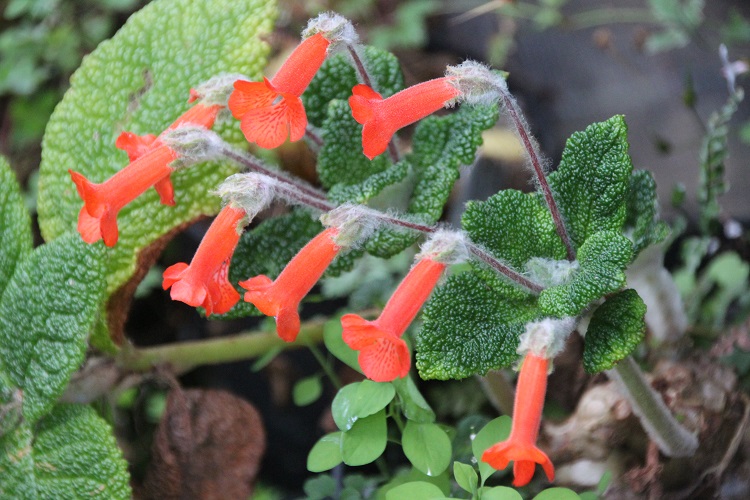 A form of Sinningia bullata in Florianopolis (Southern Brazil) that was originally distributed as "Sinningia sp. ex Florianopolis". The Gesneriad Reference web says: "This species is remarkable for the thick white wool on the back of new leaves and on the tips of new shoots, as well as for its “bullate” (bumpy or pebbly) leaves and its beautifully contrasting red flowers. It has begun to be widely used in hybridization, and has even been crossed with micro-miniature species. It hails from southern Brazil, and was collected on the island of Florianopolis. Its typical habitat is rocky steep cliffs, where it will trail tubers on “stolons” down the slope." I find this selection quite tolerant of cold but the Gesneriad Reference web continues: "A second collection of the species has recently been made, further south in Brazil, and at higher altitude. This collection is named after the collection location, Fortaleza Canyon, hence S. bullata Cânion de Fortaleza (the proper Portuguese spelling). In its natural habitat, it is subject to more sun and wind, and cooler temperatures. It apparently has a more compact form, without quite as much fuzziness as the collection from Florianopolis." Mauro Piexoto discovered the plant and describes finding it (reported on burwur.net): "Dr Alain Chautems is preparing the Gesneriaceae family of the "Illustrated Flora of Santa Catarina State" and had some doubts about a few [specimens of] dried material that he was analyzing... One of the doubts was a Sinningia that looked like a small leaved S. lineata that someone had collected years ago at a place called "Testa do Macaco" (Monkey's Forehead). So we went to Florianopolis, Santa Catarina. Dr. Ademir Reis from the UFSC (Federal University of Santa Catarina) hired a local guide to take us there. After half hiking and half climbing up a mountain for 2 hours we finally reached the plant!" |