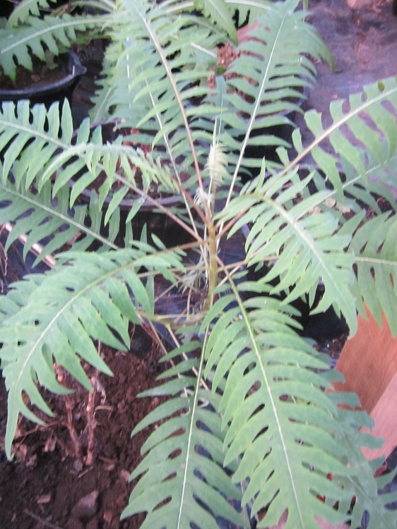 Strange Wonderful Things say: "The unusual "Tree Sonchus" - Sonchus canariensis - is found nowhere else except the Canary Islands off the coast of North Africa. This wacky, palm tree shaped Daisy relative grows 8 feet tall, looking like a plant from a Dr. Seuss book! Its fern-like foliage and tall stature makes it a bold focal point in the garden. The Tree Sonchus is rare in cultivation, and fresh seeds are rarely seen for sale. Sonchus canariensis is a woody, perennial species with an upright growth habit. I prefer to grow it with a single, tall, tree-like stem, although you may encourage multiple stems by pruning the top of the main stem. Each spring and summer, the plant forms huge heads of dandelion-like flowers at the tops of the branches. Each branch can have over 100 of these lemon-yellow blooms, which are a favorite of honey bees. This is a non-invasive species. The leaves are reportedly edible, and tasty when cooked. The plant comes from a Mediterranean climate, with mild temperatures all year, and nights that are cool. I have no information on how much heat it can take, but it's possible that it will decline if temperatures consistently rise above the mid-80s (30°C), especially if nights are warm. The plant tends to go dormant during the warm summer months, during which time it may be moved indoors to a cool spot. Protect it from temperatures below 30° F (-1°C). It prefers full sun during the growing season. It likes well-draining soil and regular watering when young. Mature plants are quite drought tolerant if given ample root space." |