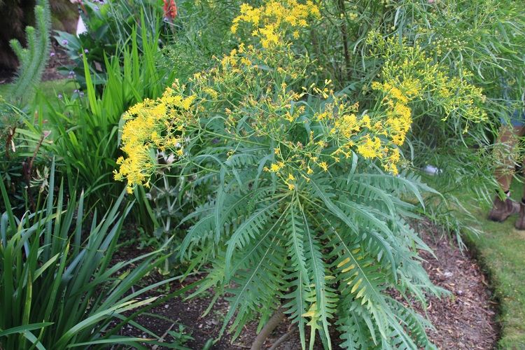 A tall, rather leggy species endemic to La Palma in the Canary Islands. It turns out not to be very cold hardy. The Garden Riots blog says: "Sonchus palmensis is endemic to the the single island of La Palma, which at only 1.5 million years is the second youngest of the seven Canaries. Three other members of the Alliance can be found there. It occurs around the entire island growing at elevations between 600′ and 3,300′, often on quite steeply sloping and rocky terrain, though its most commonly found on the eastern side. Pictures will show this growing out of rock piles suggesting that they will want very good drainage. Because they are quite common on La Palma they are listed as ‘of least concern’ by the IUCN. The foliage is very similar in form to that found growing around the rosette of our local annual Sow Thistle, on this species forming leaves closely attached to one another near the terminals of each branch, giving the plants what some would term their gawky appearance and others would describe as ‘Dr. Seussian’. The stems grow up to 6′ tall, branching irregularly on mostly bare stems. At flowering, a many branched inflorescence forms at the terminal carrying typical Asteraceae heads often described as ‘Dandelion like’, each floret, including all of the center disk florets, being ligulate with their two fused elongated petals and three diminished ones." I didn't manage to flower it but below is a picture of a mature plant in a friends garden. |