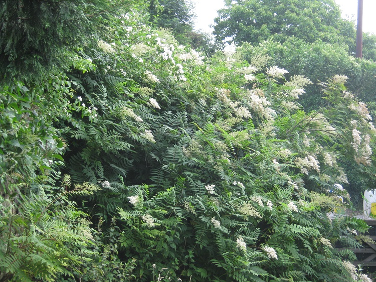 An unruly shrub that suckers freely. I planted it in a moment of enthusiasm for Sorbaria