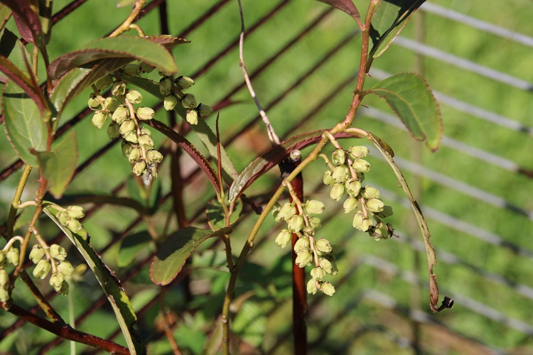 This was a perfect opportunity to plant one of the evergreen species. Bluebell Nursery say: "(Willow-Leaved Stachyurus) New to us, this is an elegant evergreen shrub with long, narrow dark green leaves and pendulous clusters of creamy-yellow flowers covering the branches in Spring. A very beautiful shrub best suited for a sheltered position in sun or dappled shade. Can be grown in a large container. |