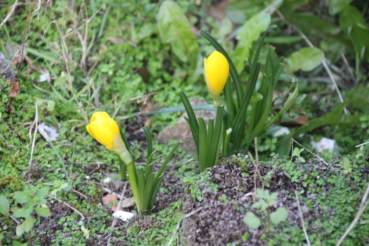 in the south side of the house, beside the back doorstep but flowering is sparse and vulnerable. Writing in 'The Plantsman' in 1983, Brian Mathew says: "Sternbergia lutea is by far the best-known species in gardens where it is much used at the foot of warm sunny walls. It makes an ideal companion for other plants whose bulbs or rhizomes require a similar hot summer baking as Nerine bowdenii and Iris unguicularis, and it thrives on chalk or limestone soils: alkalinity is however by no means essential to its well being for it does extremely well in gardens on the poor sandy soils of Surrey. The amount of leaf development at flowering time is one of the most variable features of S. luteaand largely depends upon the moisture availability in the late summer or early autumn when growth begins. In dry seasons there may be a small amount of leaf visible which is preferable from the point of view of general appearance, but it is more normal for there to be considerable leaf development. Some experiments into this behaviour by A.Amico (1947) showed that both the flowering and leafing conditions of the plant are controlled by temperature and humidity. Sternbergia lutea has long been known in gardens, for example to Carolus Clusius (1601) and John Gerard (1597) who published illustrations of it, as Narcissus autumnalis major ot the "Great Winter Daffodil". Cultivation over a period of nearly 400 years has probably led to the obscuring of its true wild origins, for nowadays it is most frequently found in or near old gardens." John Gerard says: "The Autumn Daffodil bringeth forth long smooth glittering leaves, of a deep greene colour: among which riseth up a short stalke, bearing at the top one flower and no more, resembling the flowers of mead Saffron, or common Saffron, consisting of sixe leaves, of a bright shining yellow colour; in the middle whereof stand sixe threads or chives, and also a pestell or clapper yellow likewise. The root is thicke and grosse, like unto the precedent." |