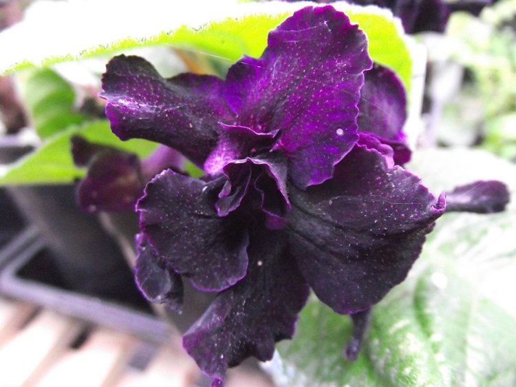 the lack of precision is lost. Dibleys say: "This plant produces a huge head of large deep purple double flowers." The "Bristol's" cultivars were all raised by The Violet Barn in Naples, New York by Dr. Ralph Robinson and his head grower Frank Rouse. On The Violet Barn website they say: "We consider our 'Bristol' streptocarpus hybrids to be superior in may ways to many others. We look for flat, smooth, foliage that is easy to manage. Most don't grow exceptionally large, making them easy to grow on a windowsill or on a light stand. Bloom stems generally are a bit shorter, so that they don't droop or get into the lights on a light stand. Many will have semidouble or double blooms, which means flowers last longer and don't fall from stems when faded. A few are even fragrant!" |