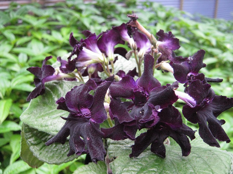 An inelegant flower, the corolla lobes are rolled and undulating and occasional fragments seem to pop up in the centre. However, the colour is amazing and in the darkness