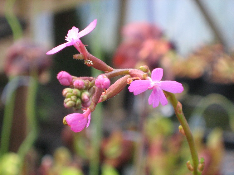 A small species that seems to have prospered wherever I have placed it. Selected in 2001 by Todd Layt of Ozbreed Pty Ltd and distributed by micropropagation. Wikipedia says: "Little Saphire is of a shorter stature, has shorter but wider leaves, larger flowers, and a deeper blue-green foliage colour than the parent species. It also begins to flower earlier in the season than the other S. graminifolium cultivar, Stylidium graminifolium 'ST111', also known under its tradename Tiny Trina." |