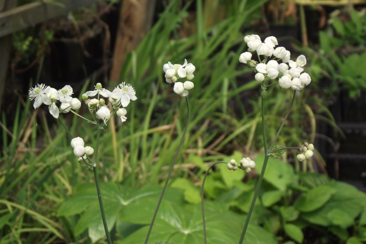 A short growing species from the Pyrennees. Only occasionally seen in cultivation but it is a beautiful and easy species. It was given an Award of Merit when shown by Kew at the Chelsea Flower Show. In the write-up in the Bulletin of the Alpine Garden Society in 1996, Tony Hall says: "Having seen some wretched, depauperate specimens of this well-known but variable thalictrum for sale at RHS shows, I was not unduly surprised by the reception afforded our fine form at Chelsea in 1996. A plant of rocky, open areas in eastern Spain and the Pyrenees, this species sports (as its name indicates) a tuberous rootstock. Its delicate, glaucous foliage is mostly basal and tri-pinnate, attractively grey-green, with the leaflets toothed or lobed. Some of our stocks flower at only 16cm in height, others at twice that and (like the award plant) it can reach 45cm in full flight. Kew's collection was made by the brother ansd sister team of Stephanie and James Joseph (J & J 319) on a field-trip to the Spanish Pyrenees in 1985. The flowers are large, ivory-white saucers, 3cm to over 4cm across, with green carpels surrounded by a conspicuous boss of pale creamy-yellow anthers; the five petals are rounded and up to 15mm wide. Although the slender erect stems have few side branches, main stalks will carry up to 15 flowers and the petals are relatively persistent for a Thalictrum, so this can be a very showy species. But miserable, anorexic-looking waifs with small, dirty-white flowers have been doing the rounds. My advice is: look before you buy. Thalictrum tuberosum is hardy and not too fussy. We have grown is successfullyn in a hot, dry raised bed outside, as well as in pots where it enjoiys a gritty but reasonably moisture-retentive compost and light summer shading. It is never bone-dry (even when dormant) and is certainly a thirsty blighter whilst in leaf. Worthwhile clones may be divided, carefully, in early autumn but fresh seed, sown and placed outside, will produce decent youngsters within 18 to 24 months. At Kew, seed raised stocks, although variable in height, retain the beautiful flower-characteristics of the original collection." |