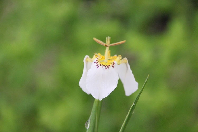 I think it has gone now but if it reappeared I would be delighted but not surprised. Plants of the World online says: "The native range of this species is Mexico (Chiapas). It is a bulbous geophyte and grows primarily in the subtropical biome." The Pacific Bulb Societty says: " is native to wet meadows in Mexico and is dormant in winter and flowers in summer" Sunshine Seeds say: "tuberous, small, deciduous plant up to 30 cm with fan-like, sword-shaped, deep green leaves with conspicuous veins. The erect, sometimes branched flower stems consist of tulip- or iris-like, white flowers with 3 large outer and 3 small inner petals and a conspicuous yellow centre with purple markings" |