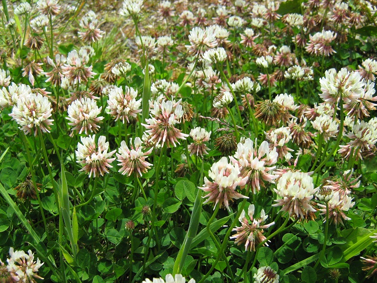 which might be interesting to introduce, but I am sure they don't perform as well as this! The Wildlife Trusts say: "White clover is a very common plant of all kinds of grassy areas in the UK, from lawns to pastures, roadsides to meadows, as both a wild and sown flower. The famous trefoil leaves are collected by Wood Mice and are one of the foodplants of the common blue butterfly; the flowers appear from May to October and are sought after by all kinds of bumblebees." The RHS say: "A common sight in wild meadows, this fast-growing clover has rich green leaflets, often with a creamy white band at their base. For many months from spring to autumn, clusters of near-white flowers appear in profusion and these are very attractive to bees and other pollinating insects. This is one to avoid if you want a pristine lawn (it can become invasive), but it is perfect if you want to create low-growing ground cover in record time. White clover can also be grown as a green manure crop and dug into the soil before the plants start to flower." |