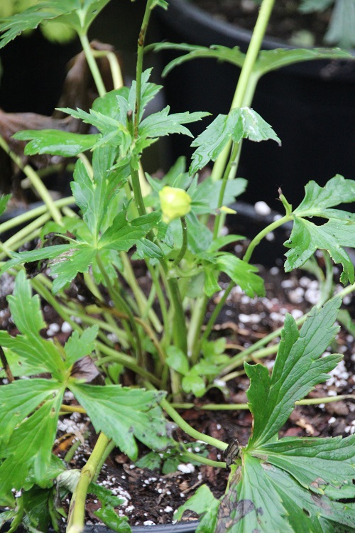arrived yesterday but why it happened? No, that is quite beyond me. Although widely circulated as CHEDDAR, it is actually the cultivar 'Taleggio'. Presumably somebody decided the CHEDDAR was a better name to sell it under. A very pale selection of the hybrid T. x cultorum that is stronger growing than the old T. x cultorum 'Alabaster' (and that is probably why I bought it in the first place). Digging Dog Nursery say: "Pale yellow, tissue-like petals fashion an exquisite, nearly double, shallow open cup. Casting a soft feminine mood on the May garden, the sumptuous blooms pose above an attractive mound of shiny foliage carved into small sections. A Dutch introduction, 'Cheddar' deserves to find its way into more gardens, where it will flourish in damp open sites matched with companions such as Sanguisorba obtusa or Geranium 'Espresso' ." |