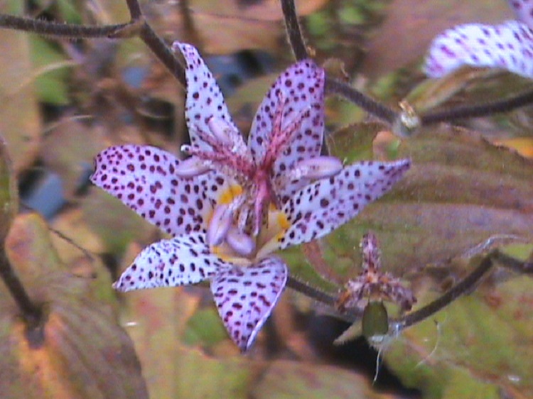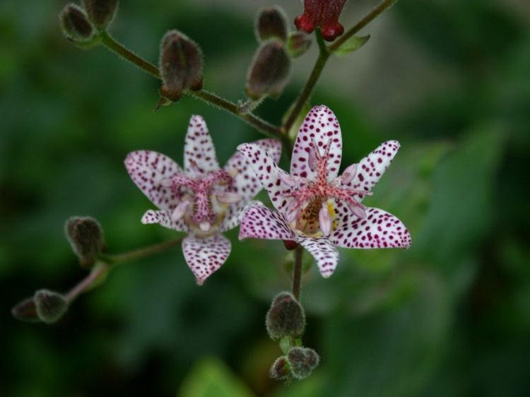 Tricyrtis often favour. I got it from Barracott Plants but there are several very similar plants to be found in gardens.