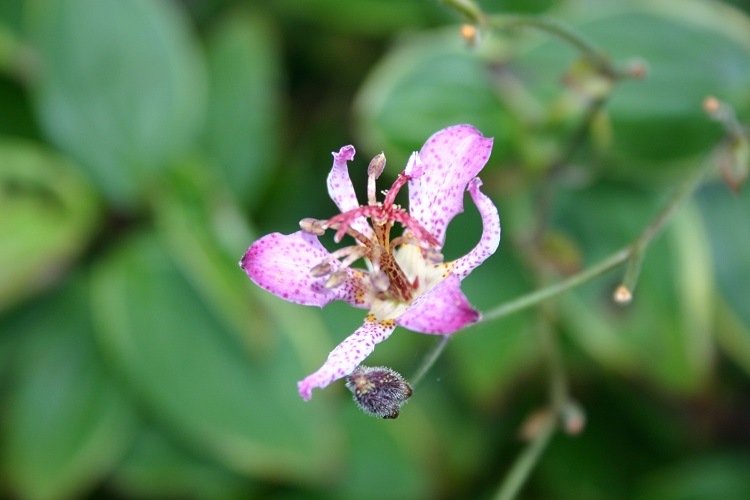 A form with thin yellow margins to the leaves, and rather pale lilac purple tinged flowers. There