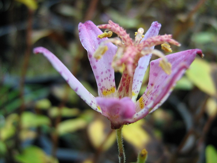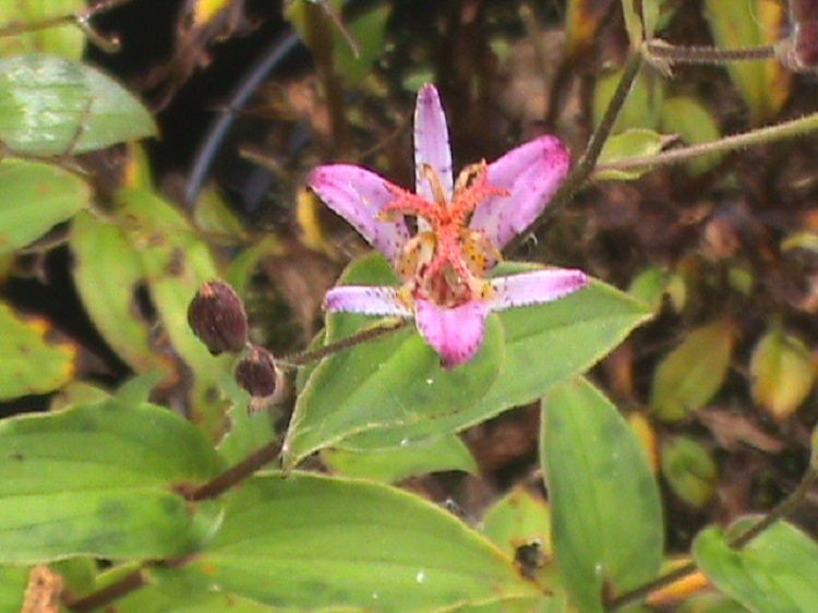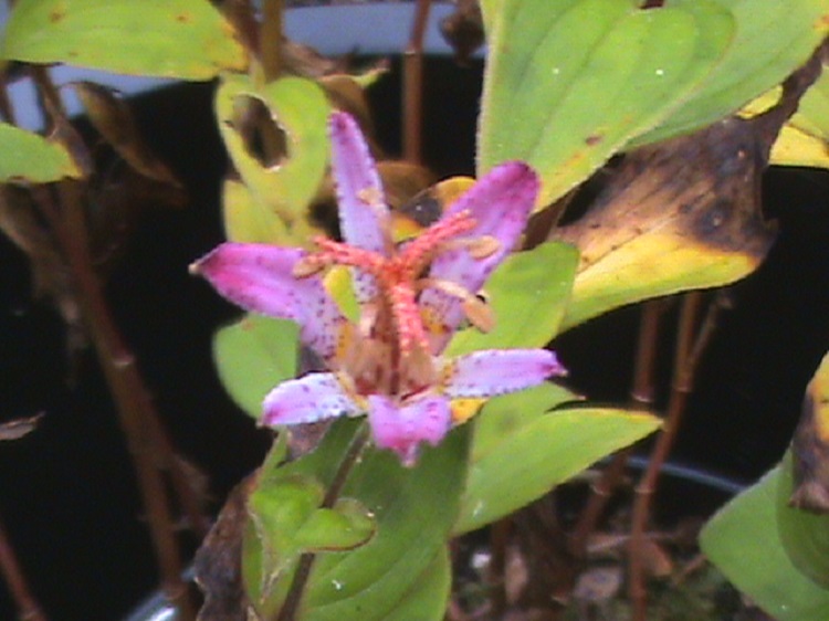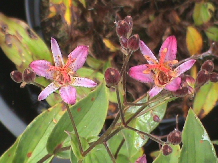 Lilac and pink shaded flowers in good sized heads. The petals are tipped in much deeper colour. I bought it from Farmyard Nurseries, their label says: "Pretty starry flowers are borne in shades of lilac and pink, slightly spotted on gently arching branches. A wonderful variety. H. 60cm." |