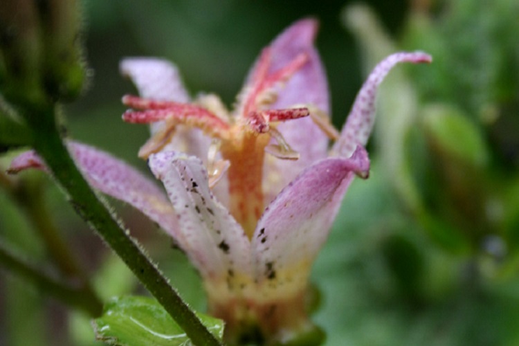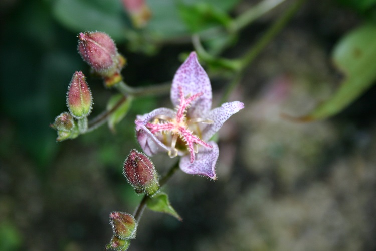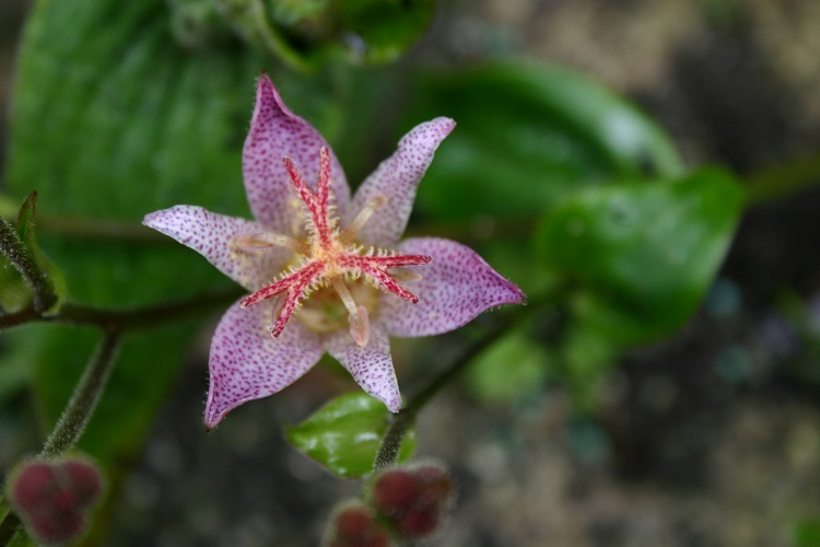 "Tricyrtis ‘Lilac Towers’ is one of the smaller selections, growing to about eighteen inches tall, but with a rather upright bushy habit and spotted leaves.