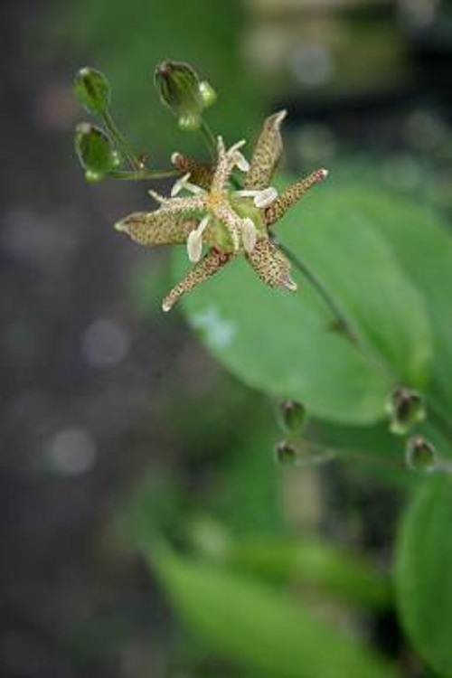 "Tricyrtis macropoda, commonly called toad lily, is native to forests, grassy slopes and rock crevices in southern China.
