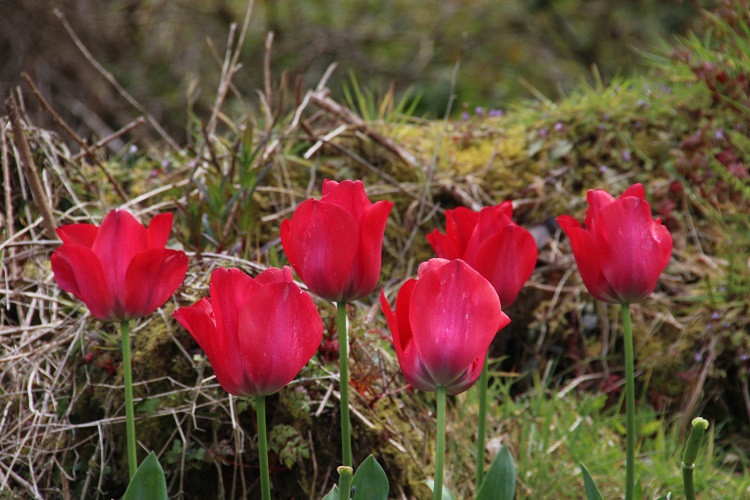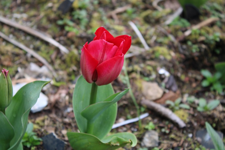 A small growing red hybrid that I bought from a garden centre. The packaging promised that it was a good perennial (in tulip terms). It flowered well in the first year,