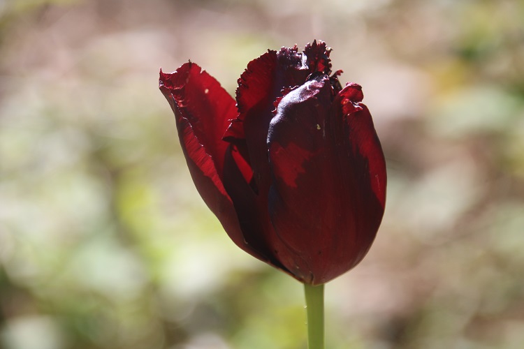 Stem green. Leaf green, ovoid, edge little and coarsely wavy. Flower length approximately 8.5 cm. Not very strongly fringed and especially fringed at top bl.bl."