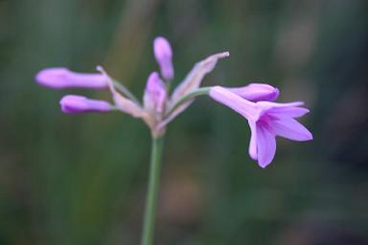 Grown from Alpine Garden Society seed in spring 2005 and just reaching flowering age. Other plants I have seen have a short, creamy yellow corona so this may not be true to name. Vosa says: "This variety of T. violacea Harv. has been found, so far, only near the sea-shore hence the epithet maritima. It differs fron the type species by its broader, shiny, dark green leaves without a prominent central vein. It has somewhat flat flowers with very small coronal lobes. All the collections are very similar to one another and self-fertile." Plantzafrica says: "Tulbaghia maritima is a coastal plant species endemic to the Eastern Cape Province of South Africa. It is distributed from Nature’s Valley to the mouth of the Gamtoos River, the area of distribution falls within the Humansdorp and Willowmore districts. This species grows close to the seashore, often in coastal forest or at river mouths, where it thrives in sandy soils amongst rocks. Tulbaghia maritima favours steep gorge-like terrain, with dense vegetation, the conditions of which alternate between freshwater input from rivers and saline water from the sea. This marine-influenced habitat’s environmental conditions are unique and challenging for seed germination and plant growth. Tulbaghia maritima is assessed as Vulnerable (VU) on the Red List of South African Plants. This can be attributed to its small natural range and the ongoing degradation and loss of its habitat to make room for coastal and tourism infrastructure development. This conservation status highlights the ecological sensitivity of the species and the importance of protecting its remaining coastal habitats. Tulbaghia maritima was formally described in 2011 by C.G. Vosa. It was previously considered to be a variety of Tulbaghia violacea but was elevated to species status following extensive fieldwork and taxonomic research. This work revealed clear morphological distinctions between the two taxa, as well as the unique and specific habitat requirements of Tulbaghia maritima. A 2016 phylogenetic study by Stafford et al upholds this status, showing that T. maritima forms a strongly supported clade of its own, beside one containing T. violacea and T. cominsii." |