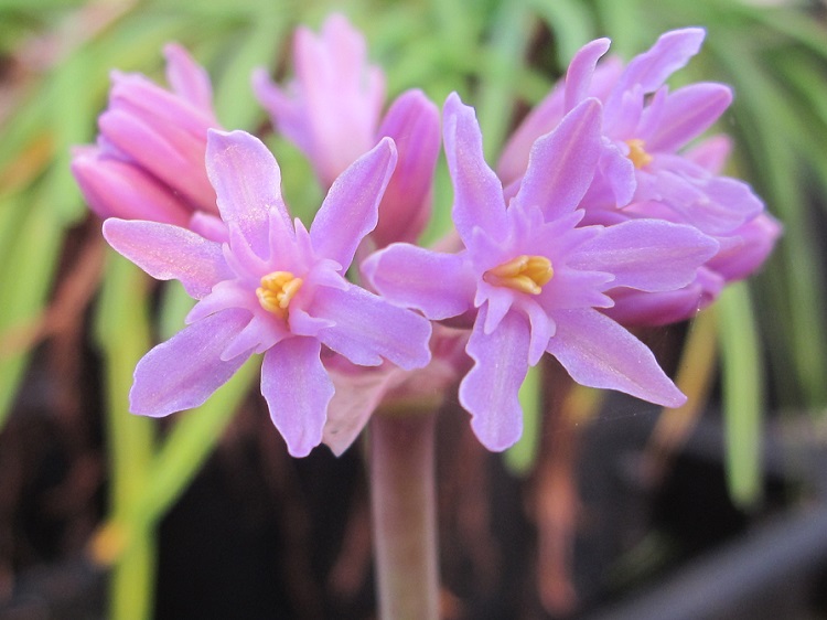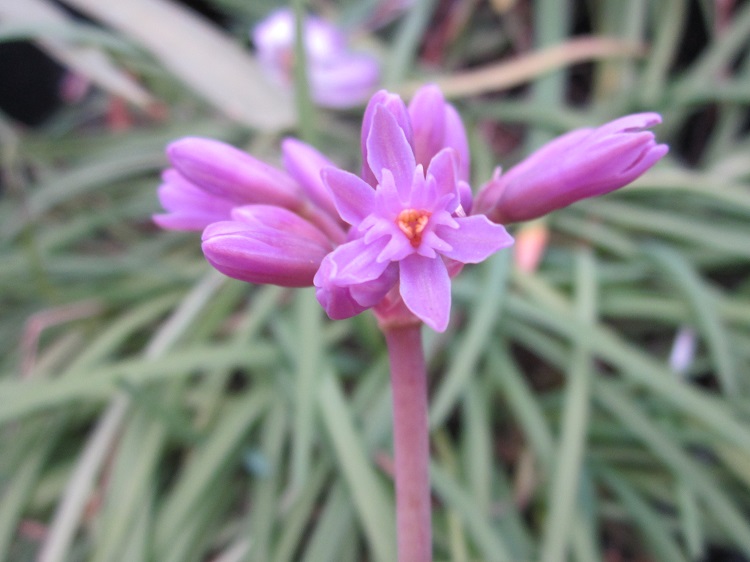 This is the real Tulaghia simmleri with pink flowers and very broad leaves. It hasn't been hardy enough to persist with me, either
