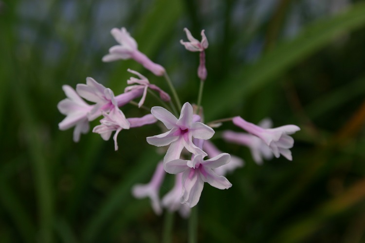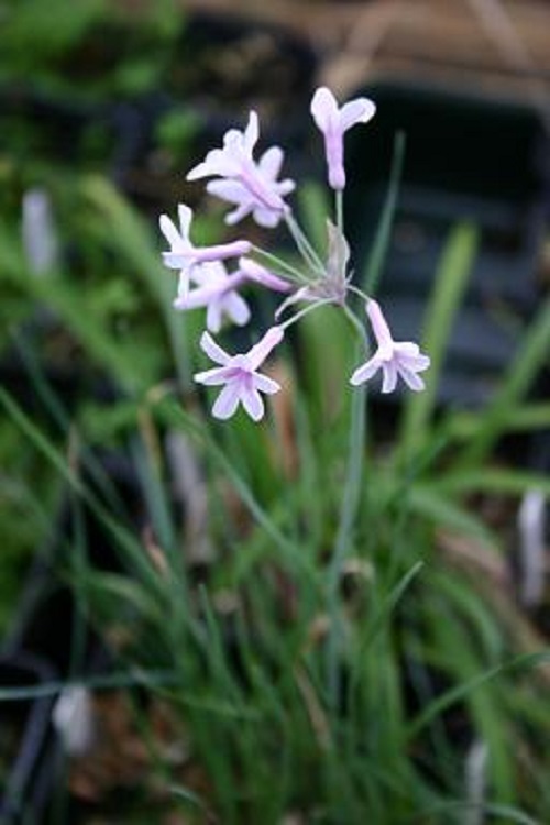 that have turned out to be quite variable as they have come into flower. There has been some loose behaviour in the perfumed bower of Tulbaghia ! T. simmleri has distinctive broad leaves. |