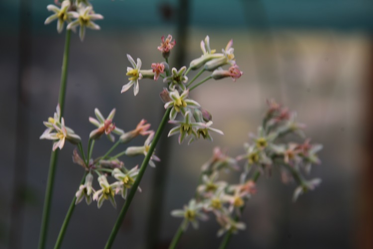 A rather lovely green and white flowered seedling from Eclectic Plants (South Yeo Nursery). It was an un-named seedling that they had acquired, but they couldn't remember its origin. Forms compact heads of small, green and white flowers on tall scapes. |