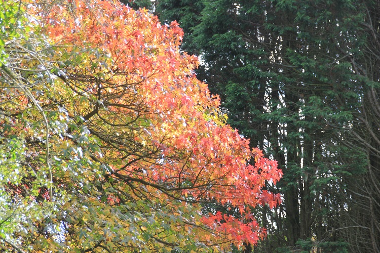 Autumn colour is a difficult thing in this garden. The Liquidambar is reliable and there are some Acer palmatum forms that show willing.