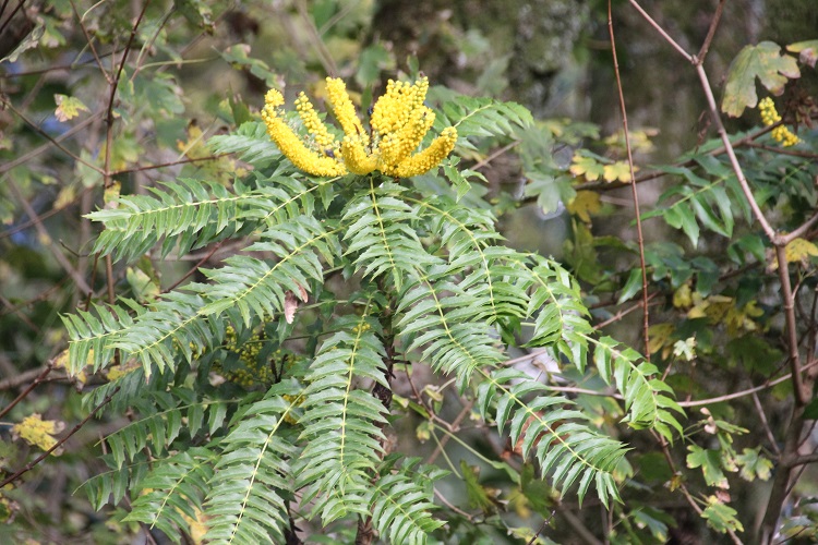 Mahonia oiwakensis lomariifolia tenuifolia is made of stern stuff. It has to be to survive the strain of its name.