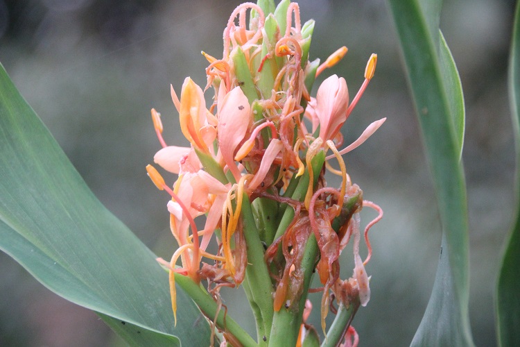 I was consoling myself last week that the pink flowered forms of Doyle Smittle's 'Tai' series of Hedychium hybrids never flowered outside in this garden.