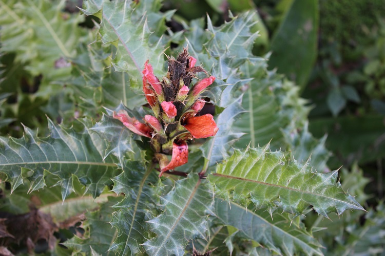 Acanthus sennii is one of the hangers-on. Occasional flower heads in August and September set the border alight with their prickly heat. Now every shoot is carrying bloom