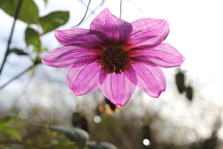The light is returning. Dahlia (australis x tenuicaulis) celebrated the survival of flowers against the grey sky. A touch of low sunshine illuminated it briefly