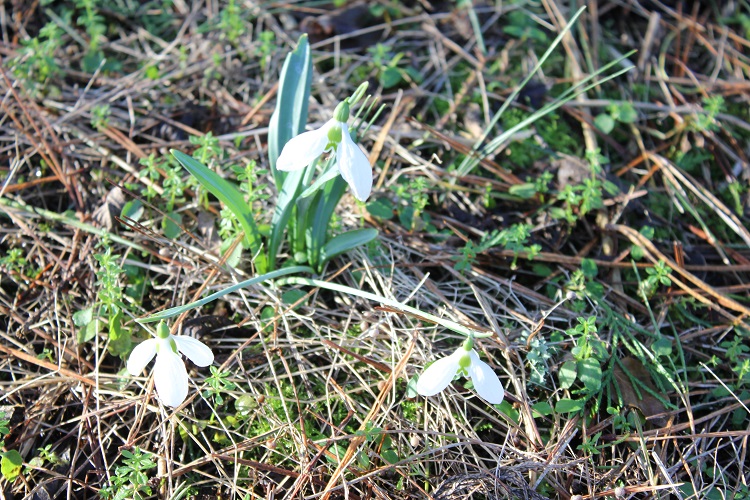 In the top woodland there are a few flowers on Galanthus 'Three Ships'. I would like more, but three clumps are establishing and I hope they will prosper. A few years ago
