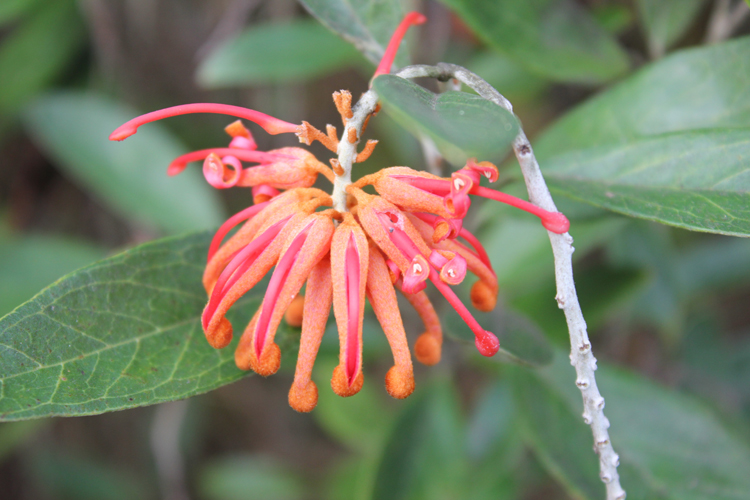 Both the garden and the gardener are maturing, it's time to let the complex detail fade away. Outside the Agave house, Grevillea victoriae is indulging in a winter show. It is on the list of things that I really must propagate this year. The original is getting old, flowering is reduced this year and it could give up on me at any time. I would like to ensure that I have a replacement to celebrate Christmas in Australia. |