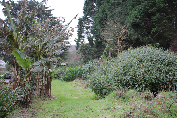 it would be very tiresome, but there would also be a silver lining. The row of Musa 'Tibet' have stood up well this year. They have been a bit shredded in the last couple of weeks but they are still looking like bananas. The same frost that might hit the Hedychium will turn them black and dejected until the summer heat returns. I am slowly extending the line of the bananas and hoping that this year some of the new plantings will start to match the originals. In the Agave house I have an end-of-year surprise in the shape of Mahonia siamensis. It is far too shaded in there for it to show its full potential, but it survives. I planted one in the garden that grew magnificently for a few years but it died. The jury is out on whether it was cold, shade or drought that finished it off. And so the year ends in the garden, cold, dark, windy and surprisingly restful. The chaos of spring is about to be unleashed. |