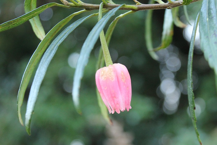 Still, wintry weather or not, there are chinks of strange light glittering through the desolate darkness. Crinodendon hookerianum 'Ada Hoffman' has a flower.