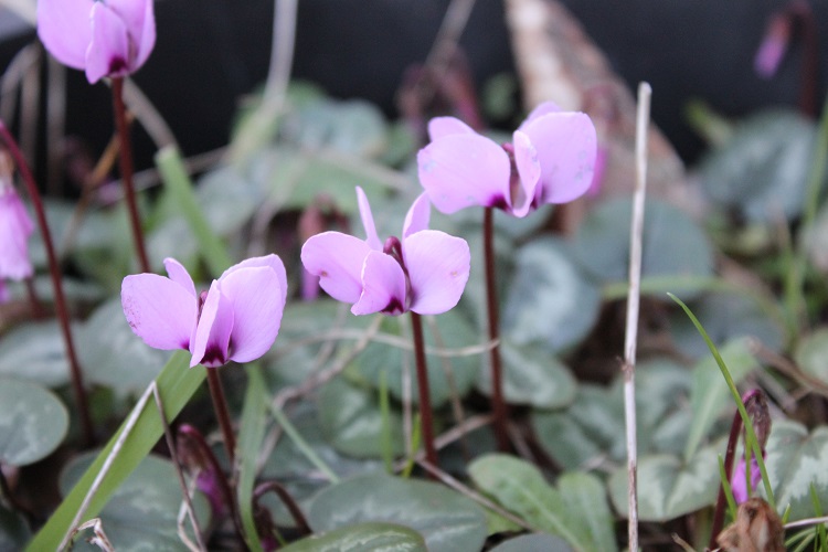 Cyclamen coum is flowering in line with expectations. It started just before Christmas but it has at last reached that heady state of full flower.