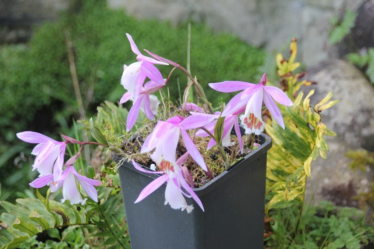 The Pleione are having an optimistic year. After several years when there simply wasn't time to repot them, they were all split during the winter.
