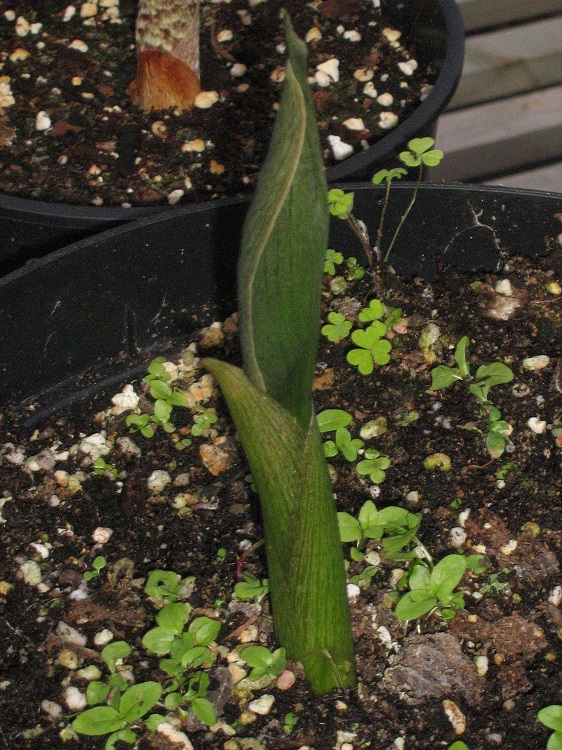 Remarkable flowers. I didn't detect any significant scent, but I didn't try too hard. (Thanks to David Scherberich for pointing out that this is a Gorgonidium, probably G.intermedium). Spathantheum orbignyanum has pinnatisect leaves and I am happy that this is a Gorgonidium however my other stock of Gorgonidium intermedium did not survive for long in the greenhouse while this has been remarkably tough. Plants of the World online says: "The native range of this species is Peru. It is a tuberous geophyte and grows primarily in the seasonally dry tropical biome." Adventurous Plants say: "Gorgonidium intermedium is an attractive plant, closely related to Spathantheum and Taccarum. Growing from a large tuber, a 12-18 inch petiole supports a greenish spathe enclosing a bright red spadix. After flowering, a large and attractive leaf is produced. Tolerant of cool growing conditions, and so ideally suited for cultivation in the UK, this makes an excellent pot or garden plant. After entering dormancy in the Autumn, store the tubers frost free. Numerous offsets are produced annually." |
