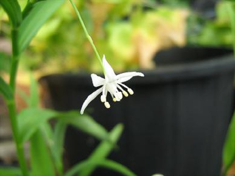 A pretty, elegant and rather tiny North American species. Does best in good light and with some moisture. I have seen it in gardens looking really wonderful, but in my own garden it is always rather feeble. Plants of the World online says: "The native range of this species is Subarctic America to NE. Mexico. It is a rhizomatous geophyte and grows primarily in the temperate biome." Crug Farm Plants say in their plant list: "One of the most useful and easily grown species originating from North American forests. Not to be confused with the clump-forming M. racemosum, as the slender creeping rhizomes of this species are far reaching filling any available space. With upright wiry stems of narrow leaves, terminating in a panicle of lightly scented white starry flowers in spring to early summer, followed by strange stripped fleshy red fruits. Height 30-45cm. Spread 45cm. A very hardy perennial tolerant of most conditions, but best grown in partial shade in a moist well drained soil. The Beth Chatto website says: "Good in large shady areas with, Allium ursinum (wild garlic), Convallaria, (lily of the valley, and Arum italicum where its colonies of short, leafy stems topped in spring with spires of starry white flowers make it effective ground cover. Spreading to invasive." |
