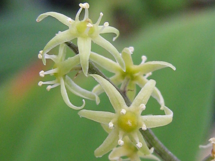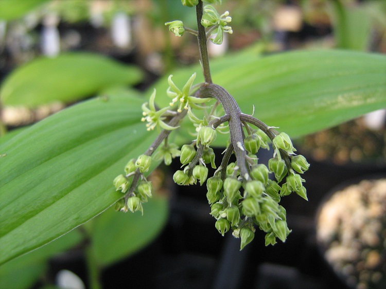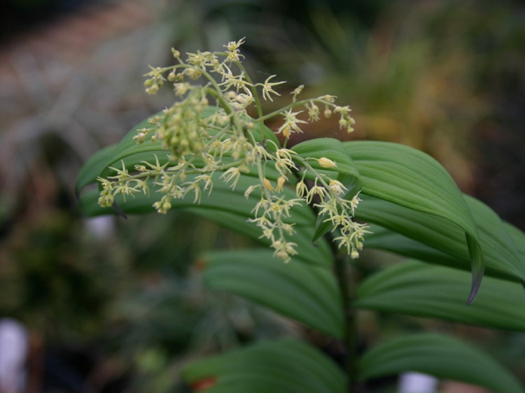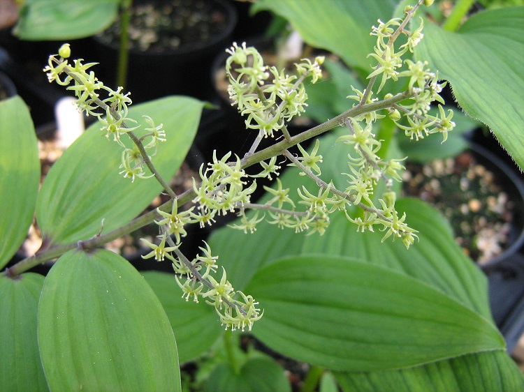 Originally introduced from China via Chen Yi who listed it as number Smilacina paniculata S32, collected at an altitude of 2,500m. A vigorous green flowered species. I have had it in a pot for some time, but it will be tried outside for the first time this year (2009). Paul Christian offered it in his Rareplants catalogue in 1999, the text reads: "This perennial grows from slender creeping rhizomes to make rise hairy stems of elliptic leaves terminating in a panicle of whitish flowers in spring, followed by fleshy red fruits. Height 30-60cm with an eventual spread of some 45cm. Requires partial shade and moist well-drained leafy or peaty soil." Crug Farm Plants say: "A newly introduced perennial species originating from China with slightly knobbly creeping rhizomes to 16 mm thick. Giving rise to distinctly non-hairy stems, bearing 6-8 oblong-lanceolate leaves on short petioles. Terminating in a panicle of starry yellow sometimes purple tined flowers May to July, followed by fleshy orange fruits. Height 40-90cm. Spread 45cm. Easily grown in partial shade and a moisture retentive but well drained soil. |