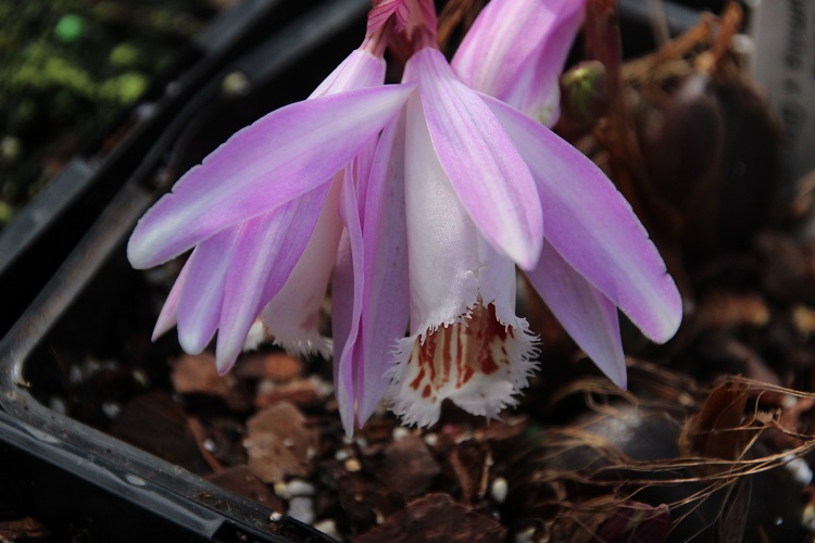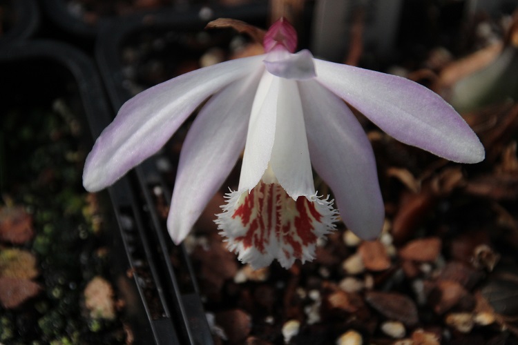 This is clone.1 (above). It is almost white with a slight blush of pink, and it generally flowers three or four days before clone.2.