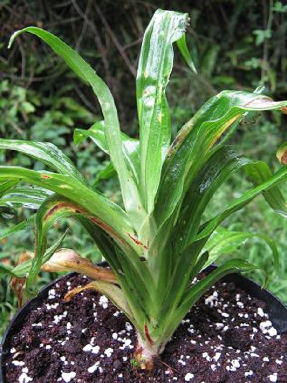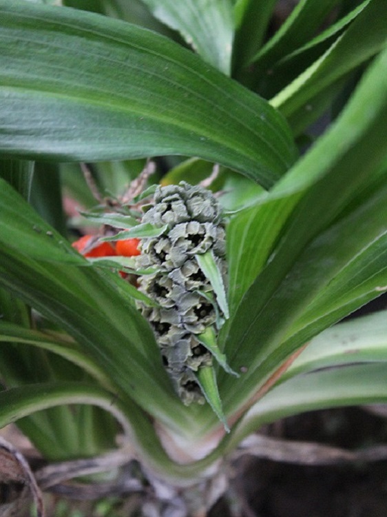 Both carry the same collection number. The change from green to orange is not uncommon in Rohdea flowers as they mature.