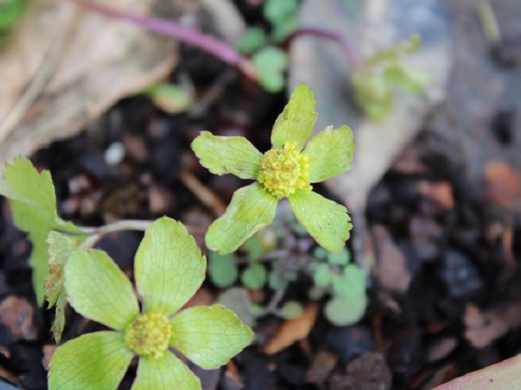 I should plant more of them really - I'm not sure why I only ever plant one of anything? It comes from central Europe where it grows on the edges of woodlands in mountains in the company of Hellebores. I couldn't understand why it wasn't spreading through the bed until I noticed that the rabbits were eating it in preference to almost anything else. I have built a little fence around it for now, and will move a piece into the shade garden (which has a rabbit fence) while I think about the best way forward. In the end I have admitted defeat. Every time I plant a piece out the rabbits have it and I'm not prepared to build little fences all over the garden. Writing on the University of Bristol Botanic Garden website, Andy Winfield says: "Sanicula epipactis (syn. Hacquetia epipactis) was originally named after Belsazar Hacquet from Carnolia (now Slovenia), a man who lived in the 18th century and was a war surgeon by trade, but had many strings to his bow. He explored the Julian Alps extensively producing a four-volume work on the geology of the region; with an obvious love of his homeland and its nature, he also collected native plant specimens for his herbarium, over 4,000 in total. Of these specimens was Sanicula epipactis, known in Slovenia as the toothed starfish flower, (hvězdnatec zubatý to be precise) appearing in deciduous forests of the Alpine foothills through a few pockets of South East Europe. In winter there is no trace, it dies back to ground level and beyond, staying out of reach from hungry snufflers; you would think nothing is there. Here in Bristol it wakes up in March, away from all the extravagant spring arrivals elsewhere in the Garden, it flowers incognito; lime green leaf like bracts surround a small yellow inflorescence that stick close to the ground. A plant you have to work to enjoy, first to find it and then to stoop down for a closer look; the green is vibrant, and its habit is perky giving an all-round cheerful disposition that can only make you smile when you see it, just getting on with its own thing in its own way. The flowers are soon joined by verdant leaves which nestle amongst the flowers forming a small jaunty clump. Plants like to feel at home and as a woodland plant Sanicula epipactis enjoys its life in the shadows, my pet name for it is the shady daisy, and a spot not too dry; plant it nice and deep and it’ll think it’s under Slovenian beech. It’s becoming more widely available to buy, and if you have a spot in your Garden that fits the bill I’d recommend it." Writing in the Bulletin of the AGS in 1953, Gwendolyn Cadney says: "In a shady corner of the garden, which is slightly damp, two woodland plants are making their modest show. Dondia (Hacquetia) epipactis, a member of the Umbelliferae, and a rather uncommon plant of certain European mountain woods, does not appear to be very generally grown, though it is very easy, and one might do worse than encourage its quaint flowers. The golden flower-umbels are surrounded by a wide six-leaved involucre of greenish yellow, and they rise on three-inch stems from the palmate foliage which develops a little later. It flowers very early in the year, often in January, even before the shrill " winter aconite," and it has its little hour in our garden before the arresting purity of Trillium grandiflorum deflects our eyes." |