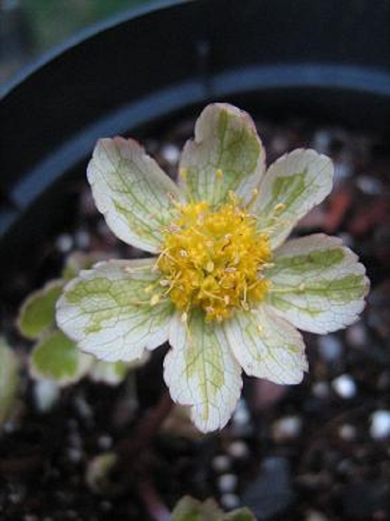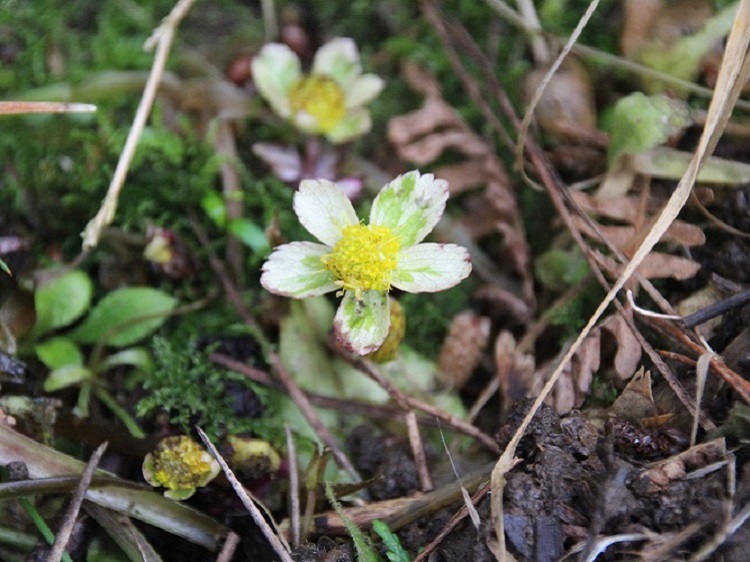For the first time it has looked vigorous and still has leaves in June, something I have never seen before. I bought it from Little Heath Farm Nursery, their label says: "A clump-forming perennial with glossy bright green leaves edged white and tiny yellow flowers surrounded by variegated bracts. Height 15cm. Moist well-drained soil in part shade. Feb-Mar." Writing in 'The Plantsman' in 2008, Tim Ingram says: "The variegated cultivar, known as 'Thor', which has been grown more widely in Scandanavia than elsewhere, is a beautiful plant but slow and difficult to divide, even though relatively easy to grow once obtained. In this, the leaves and floral bracts are widely edged in white and the ground colour of the leaf is distinctly blue-green compared with the apple-green of the type plant." |